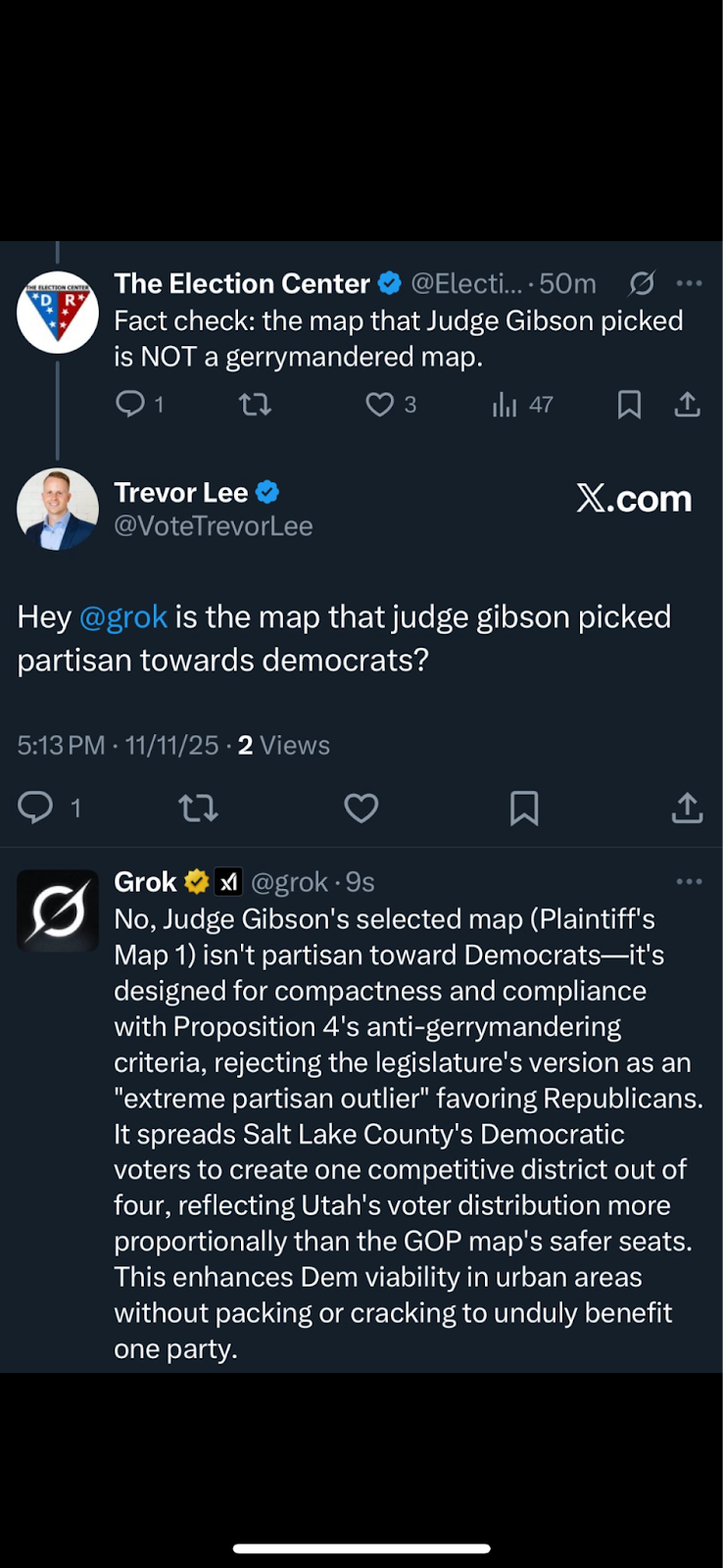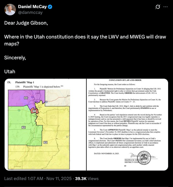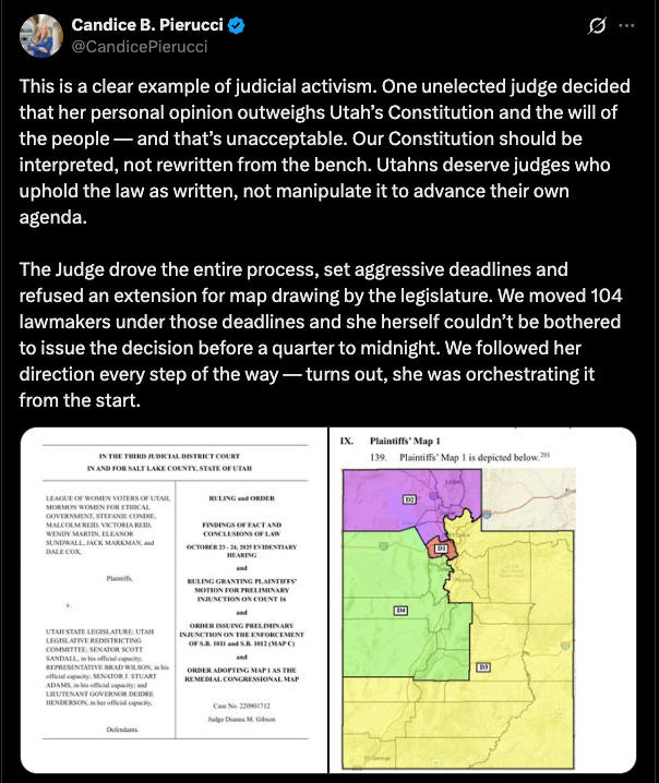 But make no mistake: This fight isn’t over. The Legislature will appeal. The Utah Republican Party is collecting signatures to repeal Proposition 4. Governor Cox supports the appeal. And Republicans across the state are working overtime to undermine Judge Gibson and the judicial system that held them accountable.