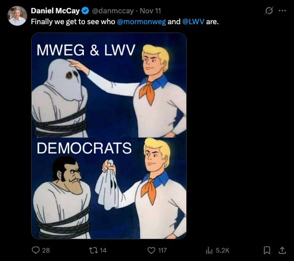 Also, Dan? The Scooby Doo meme? Really? You’re a state senator. The League of Women Voters and Mormon Women for Ethical Government sued to enforce a law that Utah voters passed. They won. The only “villain” getting unmasked here is partisan gerrymandering.