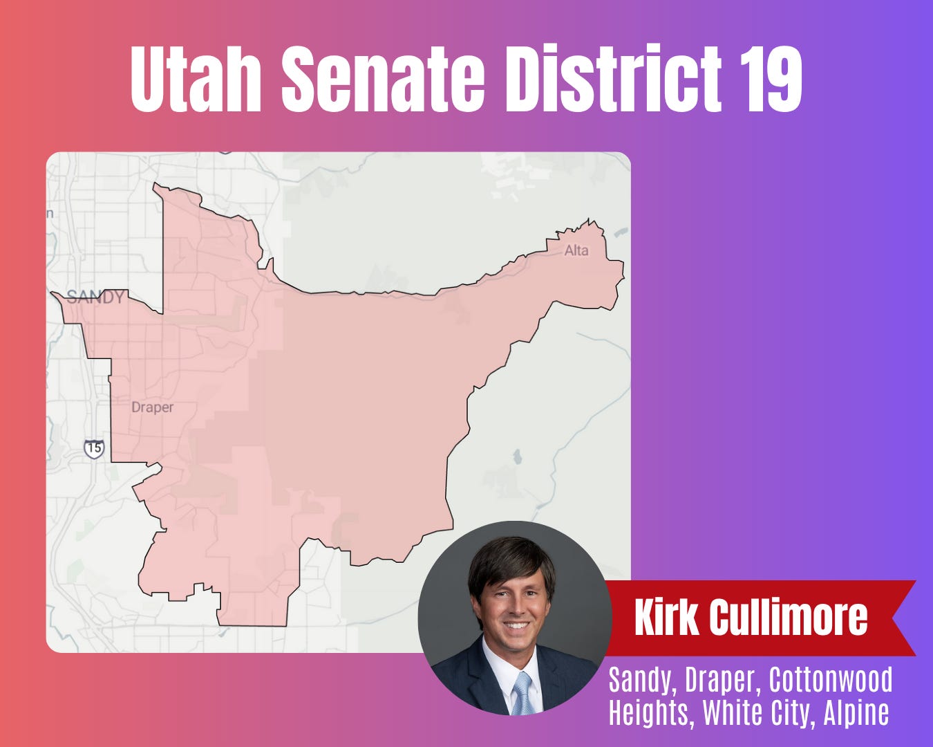 I would love someone to unseat Kirk Cullimore, because of his law firm I spent 3 months homeless and spent $12,000 in hotel fees in 2017 to keep my children off the streets and out of the shelters that were infested with Lice. We paid off an eviction and he kept it on our credit for another 4 years after we paid. Then he tried to go after us AGAIN for the same money after we found a place. His law firm is horrible, please someone run against him and show him that Utah is tired of his corruption.